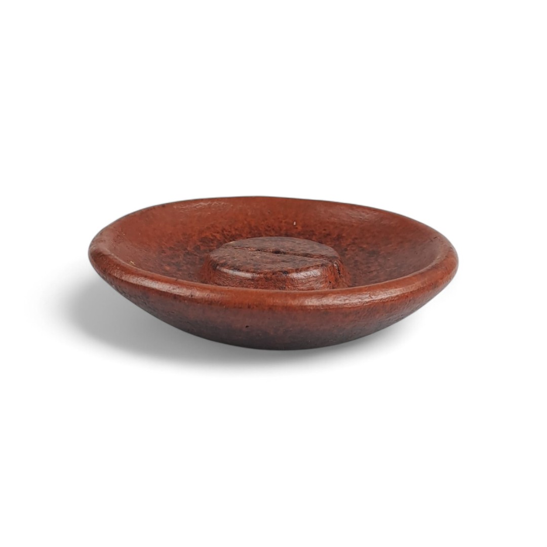 Piattino in terracotta dipinto a mano, dal caratteristico colore marrone caldo, ideale per la combustione di incensi e strisce di carta d’Eritrea. Il materiale naturale e resistente al calore assicura un uso sicuro e durevole.