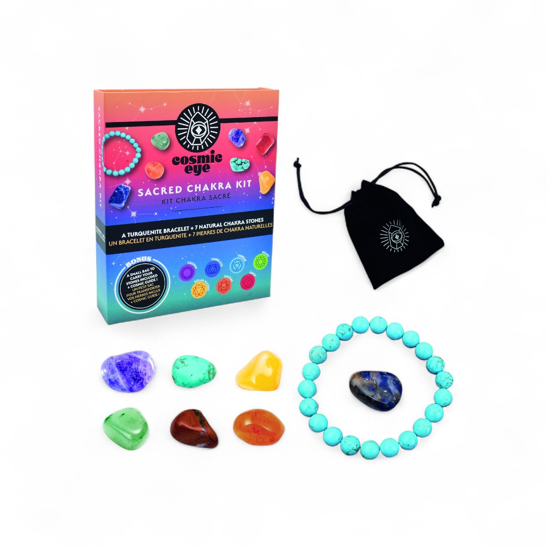 Una confezione elegante con braccialetto turchese e 7 pietre ispirate ai chakra. Pensata per chi cerca un regalo simbolico, legato al benessere interiore e all’armonia energetica.